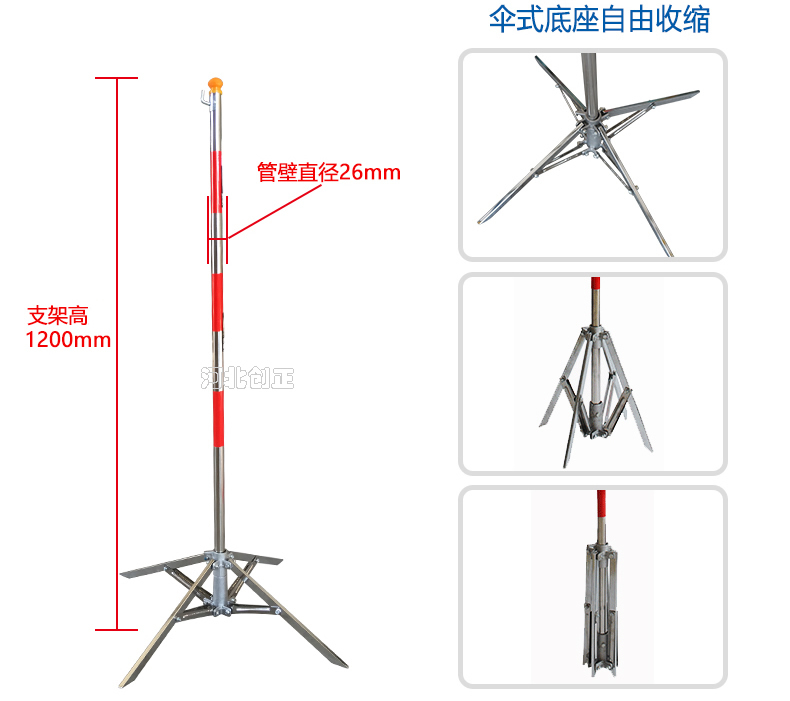 產(chǎn)品特點:不銹鋼管制成,紅白相間,下面為傘式支撐;