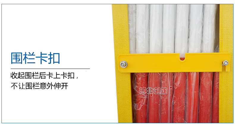 3、產(chǎn)品特點(diǎn):紅白相間有警示作用;配有底輪,搬運(yùn)方便。